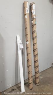 55" W x 2ft L, (2) 56.5" W x 54" L. Don't see any issues. Refer to photos for lot contents, more details.