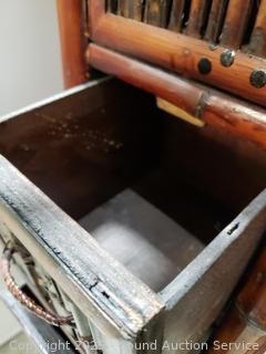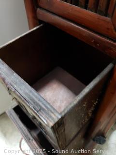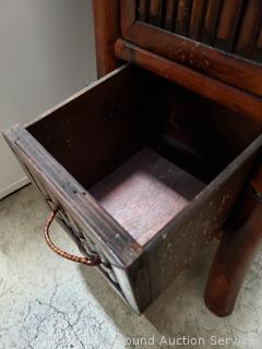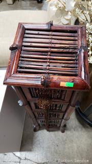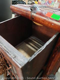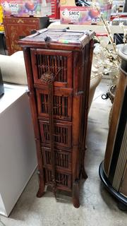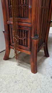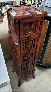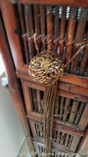 Comes with a beaded fringe accent pieces. Some scuffs, wear to finish. 38" H x 9.5" x 9.5".