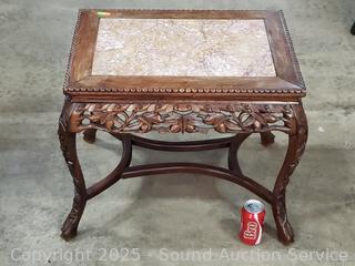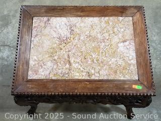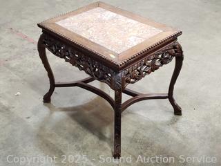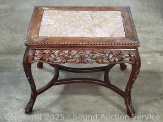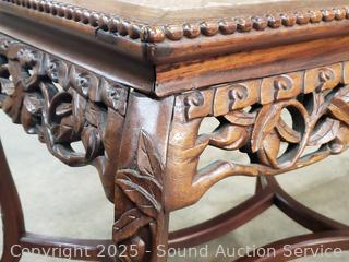 Lot #0022: Carved Mahogany Skirt Cabriole Leg Marble Top Accent Table