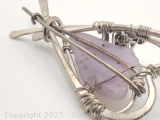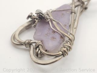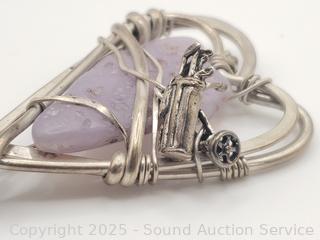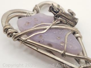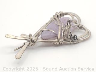 Lot #0013J: Native? Signed ES Sterling & Lavender Agate Heart Brooch