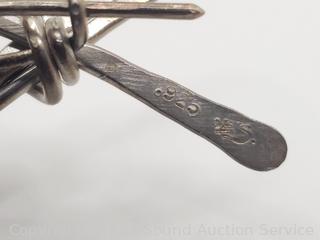 Has a little golf bag charm, could not find signature in native hallmark database. Unsure if native jewelry. Marked 925, tested silver. TW:18.9g.