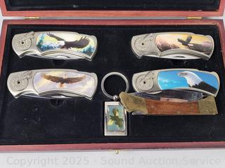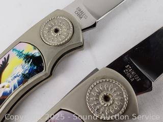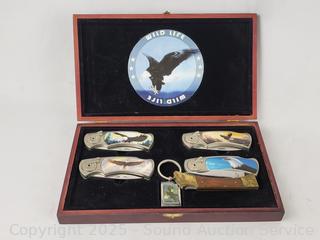 Lot #0182: Wildlife Folding Knife Set & Keychain w/Case