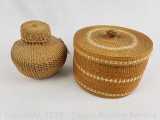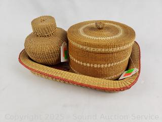 Lot #0288: 3 Primitive Native Sweetgrass Woven Baskets