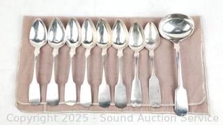 Lot #0005L: 8 Silver Spoons & Ladle