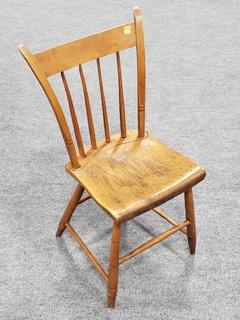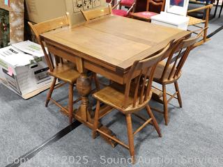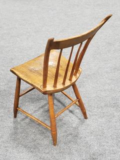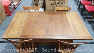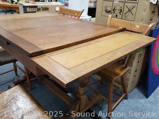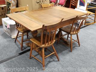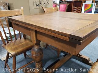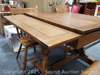 Lot #0023: Antique English Oak Tressel Table w/4 Maple Plank Chairs