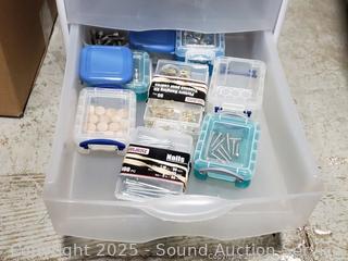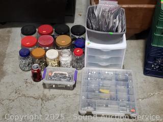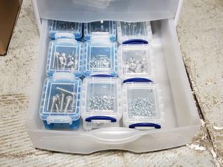 Slider pads, screws, nails, nuts, bolts, washers, etc. Refer to photos for lot contents, more details.