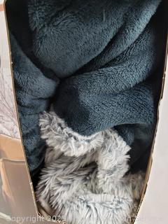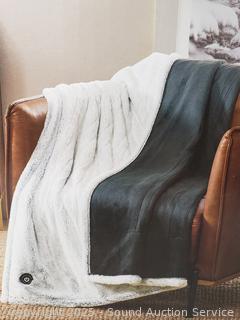 Lot #0154: Berkshire Heated Luxe Faux Fur Blue Throw Blanket