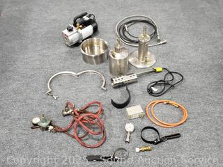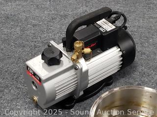 Has been used, can be used for essential oils, believed was used for marijuana, needs a proper cleaning. Tamisium Extractor tank model TE700VRV-2600-12. 4cfm pump, bucket heater, etc. Untested.
