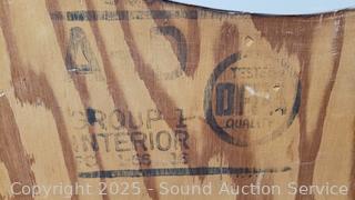 15" H x 33" W x 5". Some scuffs, wear to finish.