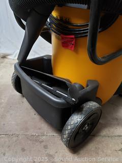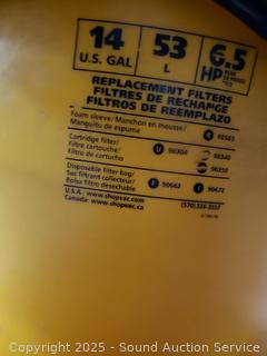 Approx 12 Gallon? Comes with hose. Works. Signs of wear from use.