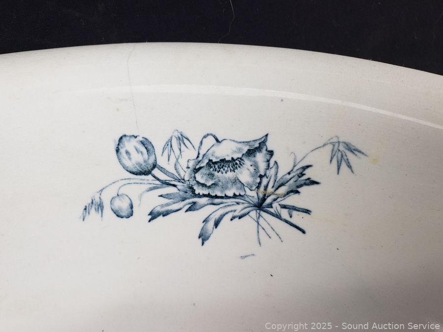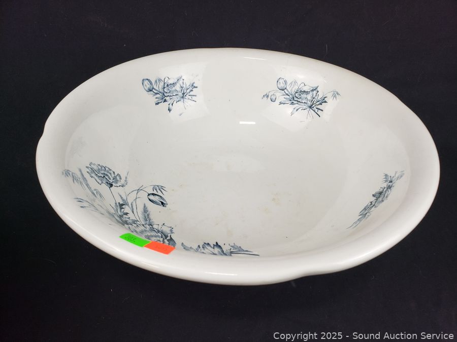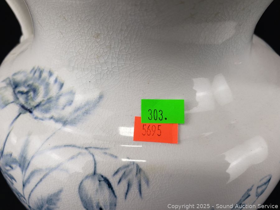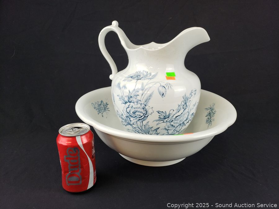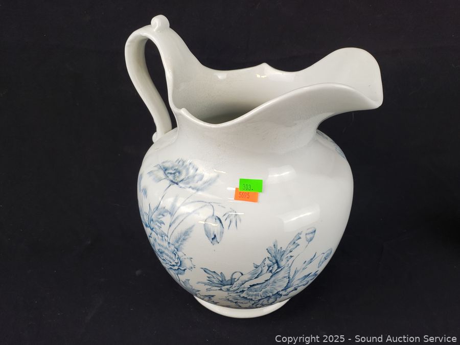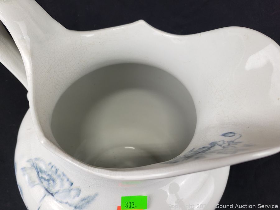 Lot #0303: Blue & White Ceramic Pitcher & Basin Set