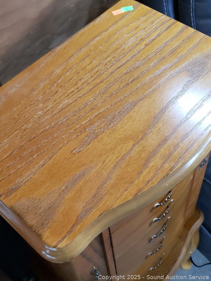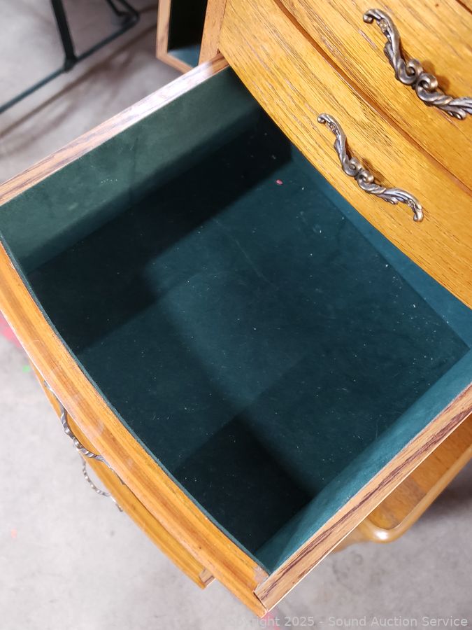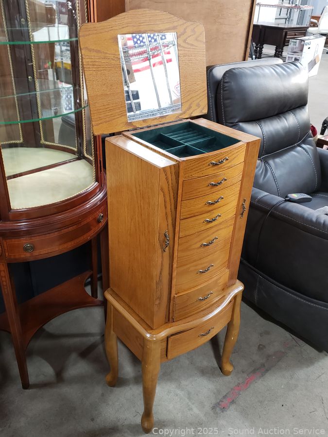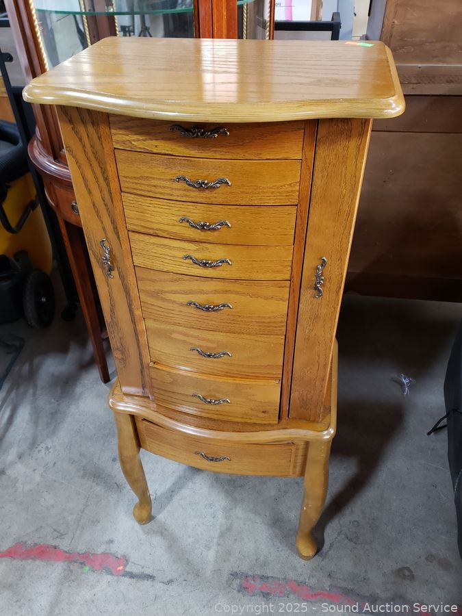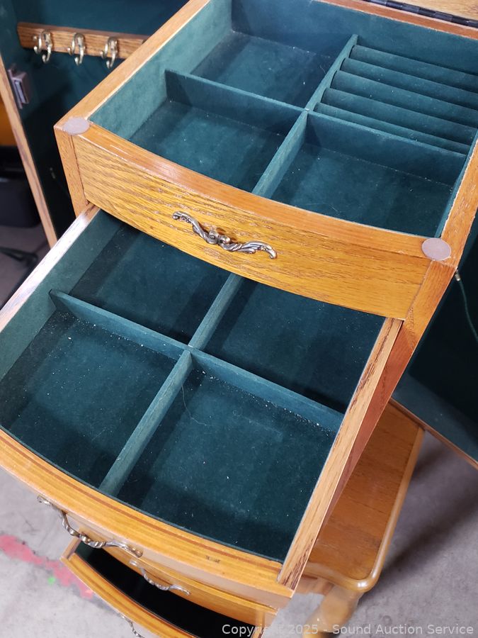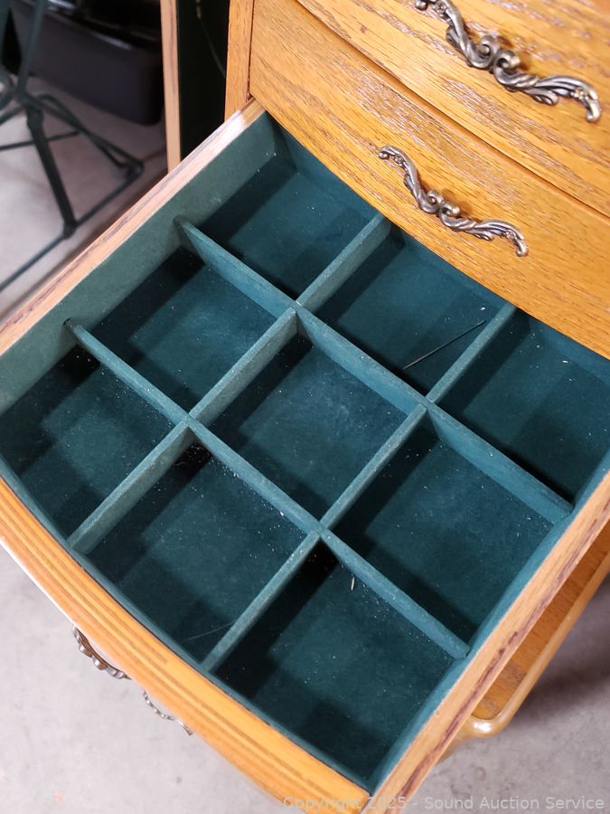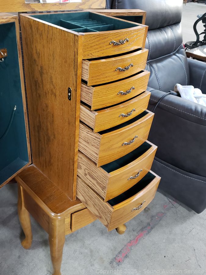 Lot #0006: Oak Finish Freestanding Jewelry Chest