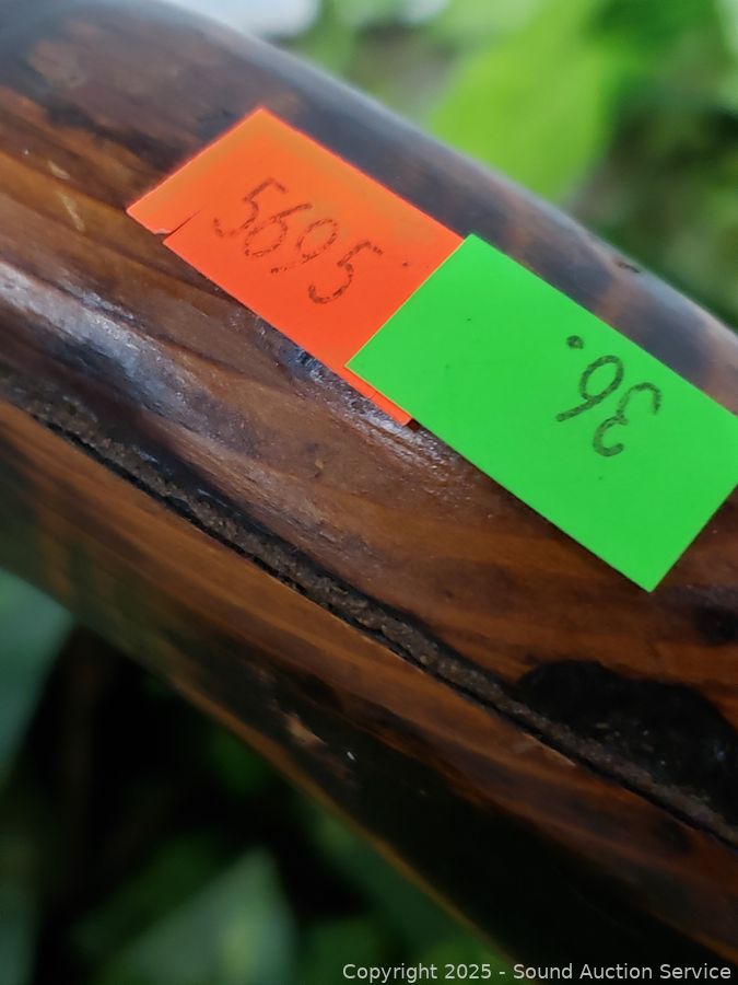 Some Asian script carved into the side of the handle. Approx. 20" H x 14" Dia. Center band is a little loose.