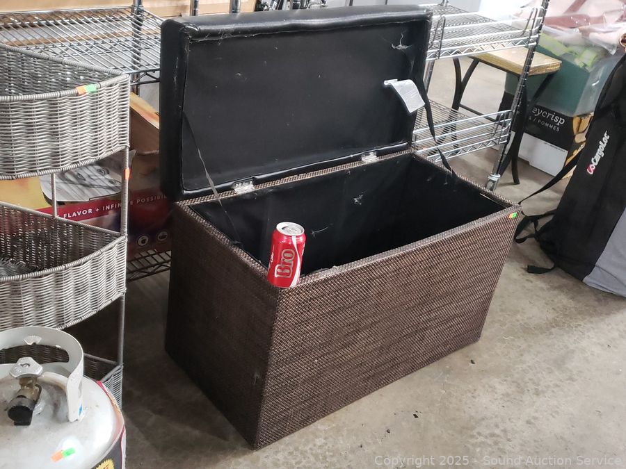 Lot #0032: Woven & Black Vinyl Seat Chest