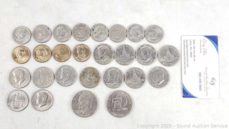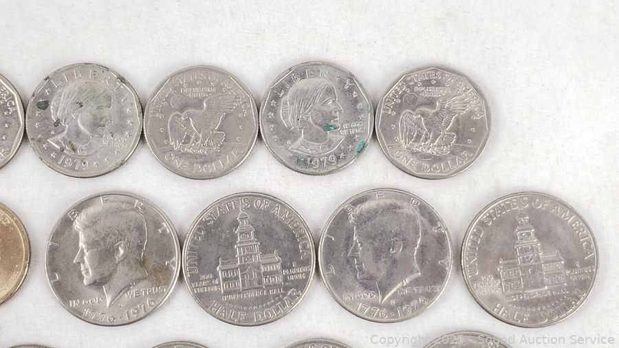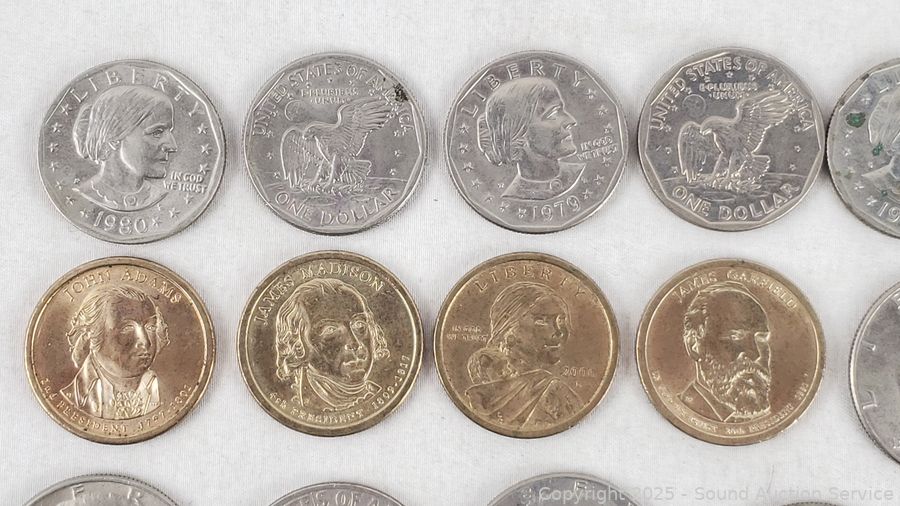 (8) Susan B. Anthony dollars, (4) presidential dollars, (2) Eisenhower dollars, (13) Kennedy half dollars. ATTN: We are not coin or currency experts or graders, please use your own judgement when bidding.
