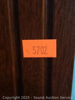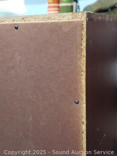 Adjustable shelves. Particleboard construction, veneer finish. Some scuffs, wear to finish. 71.5" H x 30" W x 12.25" D.