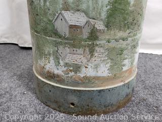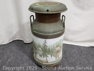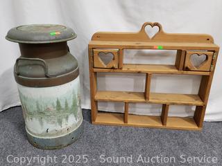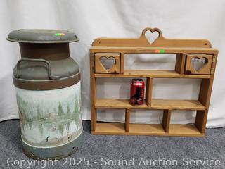 Lot #0043: Milk Can & Natural Wood Finish Knick Knack Shelf