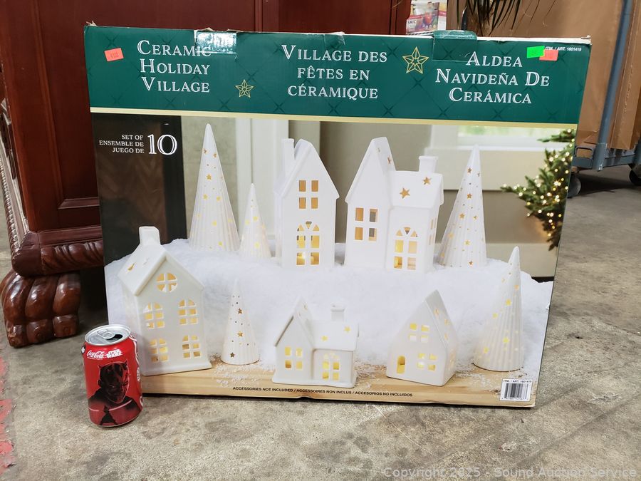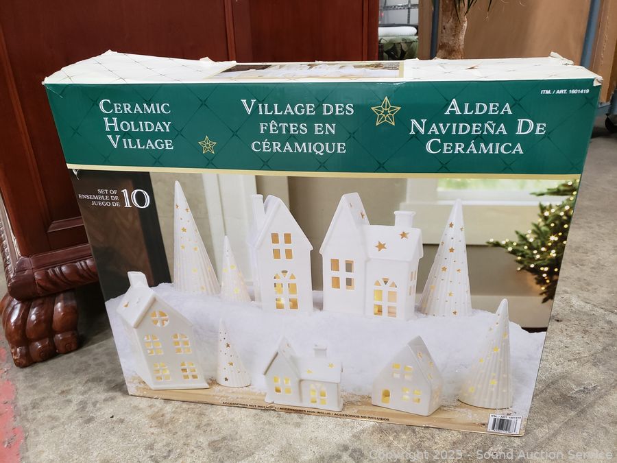 Lot #0089:     10pc Ceramic Holiday Village Set