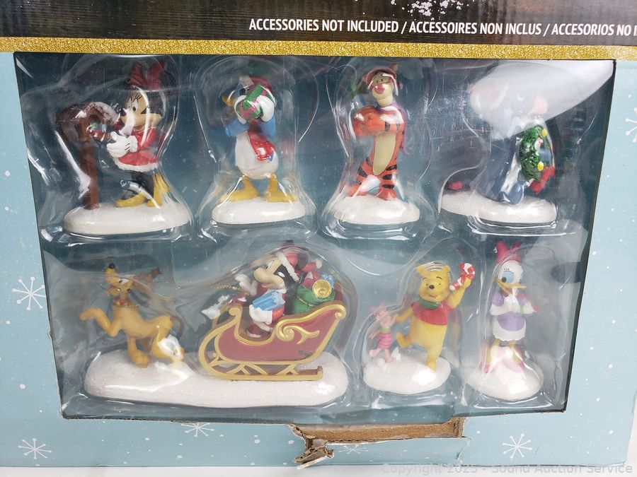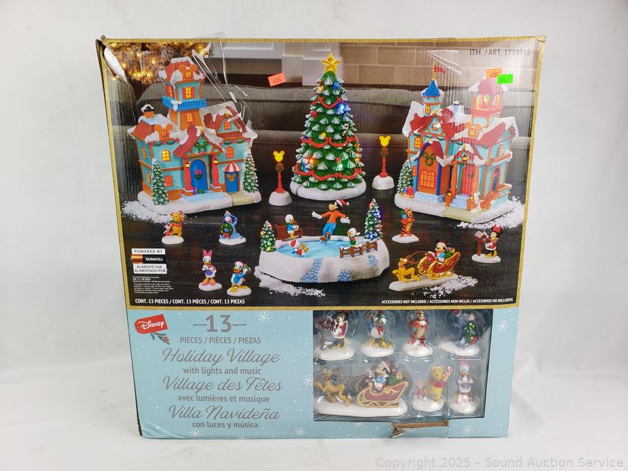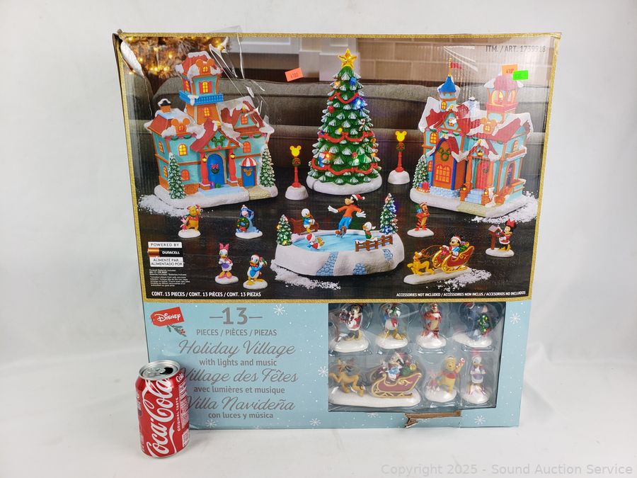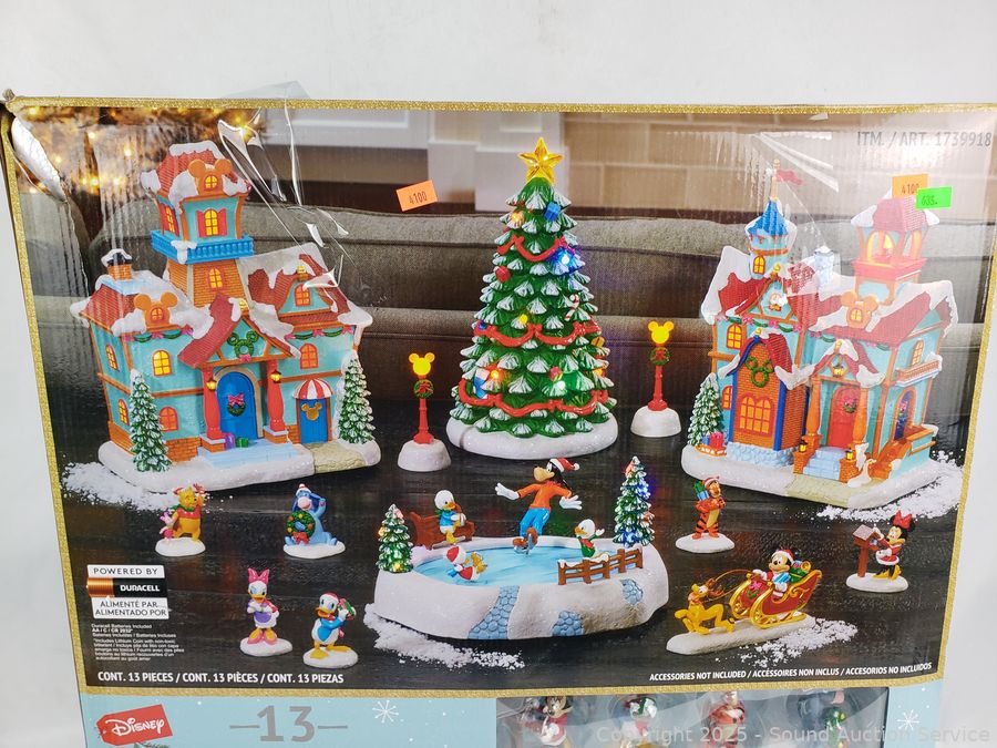 Lot #0635:     13pc Disney Holiday Village w/Lights & Music