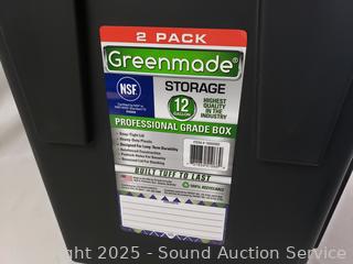 Lot #0661: 2 Greenmade 12-Gallon Heavy Duty Stackable Storage Totes