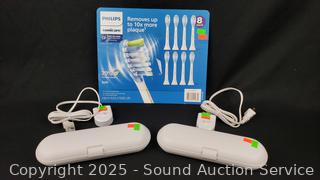 Lot #0323: 2 Philips Sonicare Cordless Toothbrushes w/6 Brush Heads