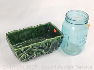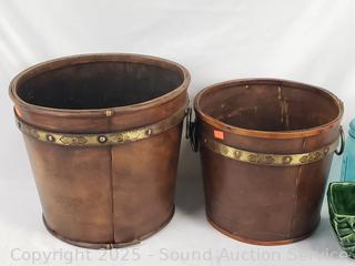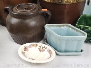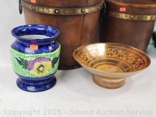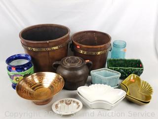 Lot #0249: 2 Wood Pails, Ceramic Planter Pots, Jar, Bowl etc.