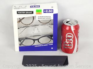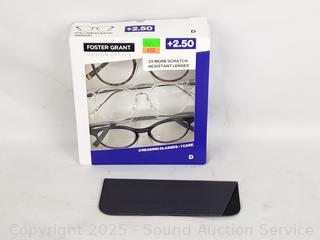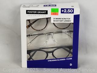 Lot #0447: 3 Foster Grant +2.5 Ladies Fashion Reading Glasses w/1 Case