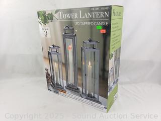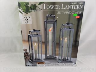 Lot #0638: 3pk Gray Finish LED Tapered Candle Lanterns w/Remote