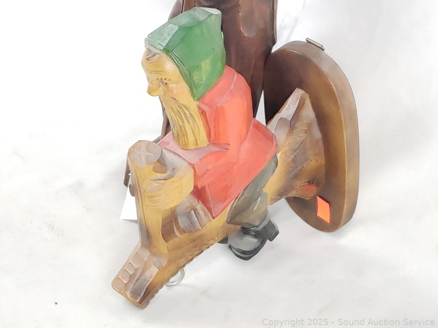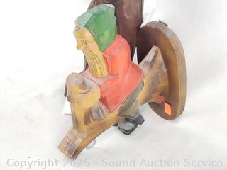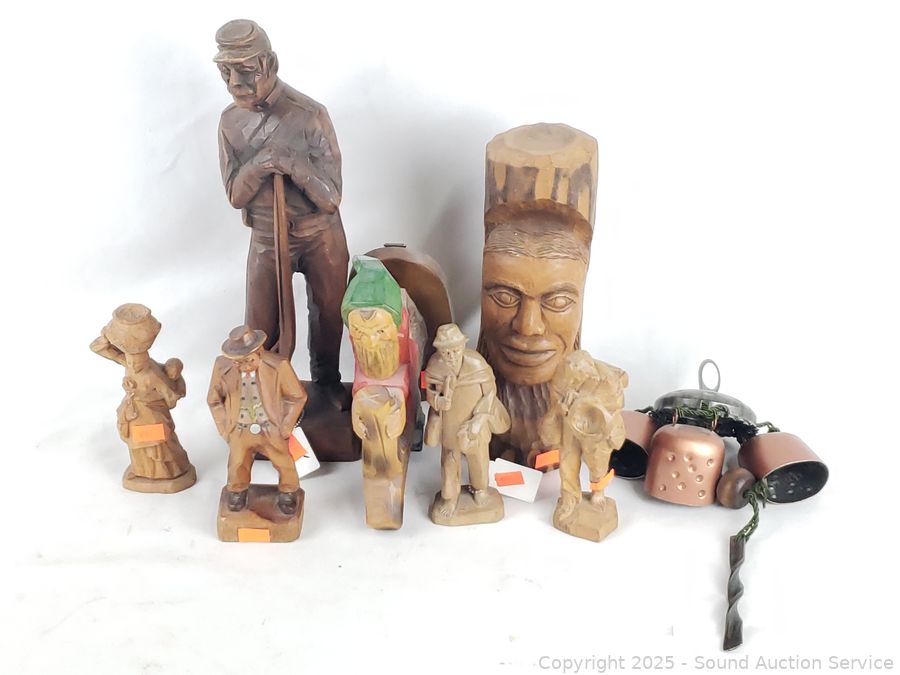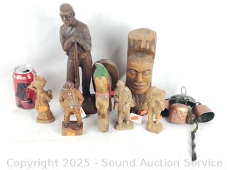 Lot #0476: 6 Carved Wood Figures & Carved Door Chime Figure