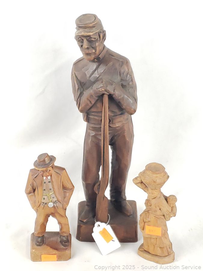 All look to be hand carved. Approx. 6" to 13" tall. Refer to photos for more details.