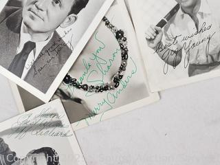 Some appear to be facsimile; others may be real. James Whitmore (possibly real), Vera Ellen (facsimile?), Betsy Drake (facsimile?), Jan Sterling (real), Gig Young (facsimile?), Spencer Tracy (facsimile?), Jeff Richards (real), Marjorie Steel (real), Merry Anders (real?). Refer to photos for more details.