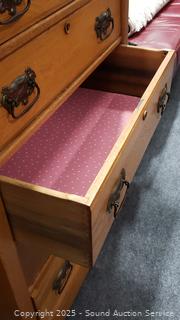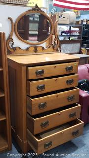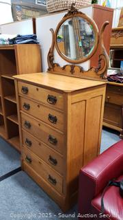 Lot #0347: Antique Oak 5 Drawer Vanity Chest of Drawers