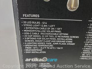 Lot #0334: Artika Blaze Solar LED 42ft Outdoor String Lights