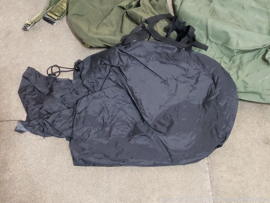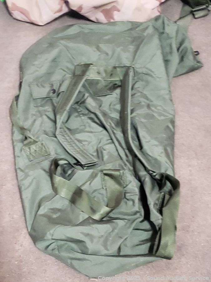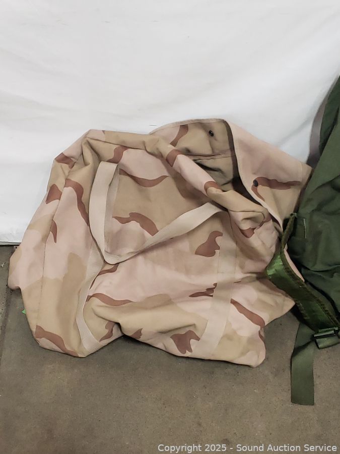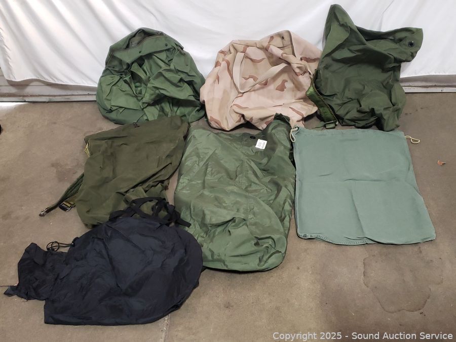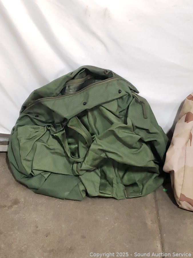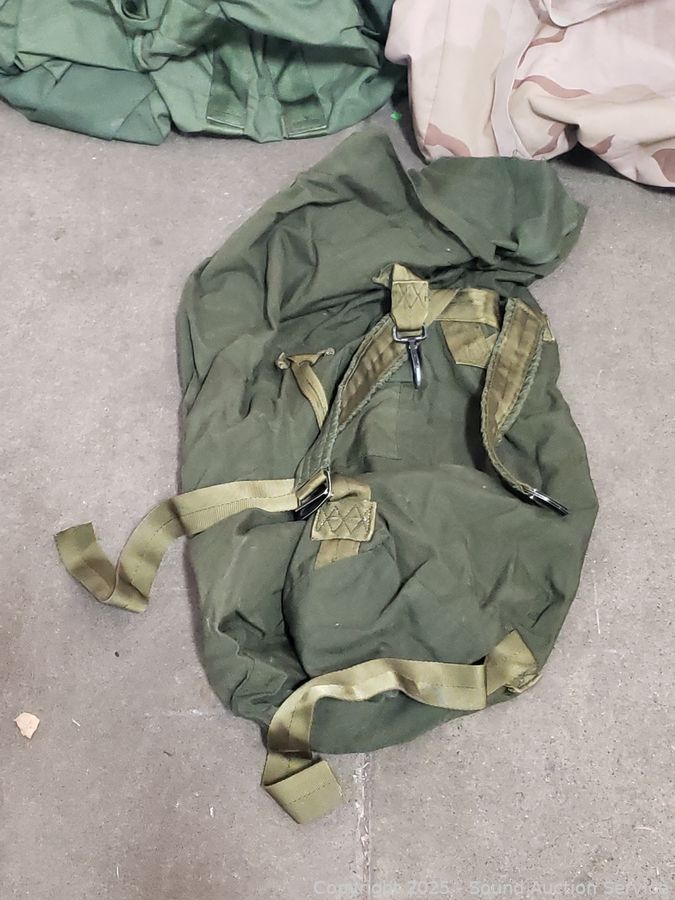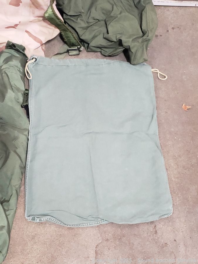 6 Military Bags & Other - All have a strong dog odor, need washed. Refer to photos for lot contents, more details.
