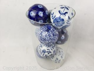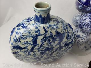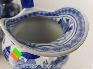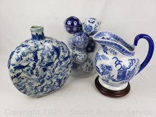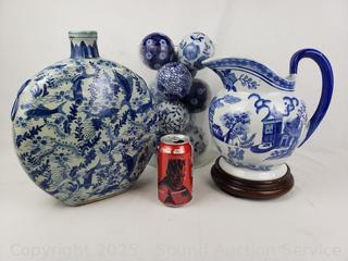 Lot #0474: Chinese Blue & White Pottery Spheres, Pitcher & Bottle