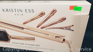 3-in-1 flat iron style assist large detangling brush, 2 sectioning clips. Appears to be functioning as intended, other than missing 2 clips, don't see any issues.