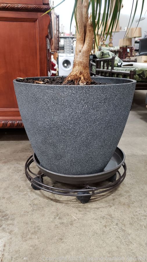 Comes with rolling cart, composite pot. 70" tall overall.
