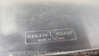2 pans with 1 lid. Some light wear, dirty spots from use. 13" x 18".
