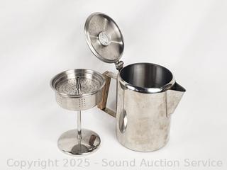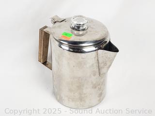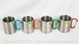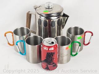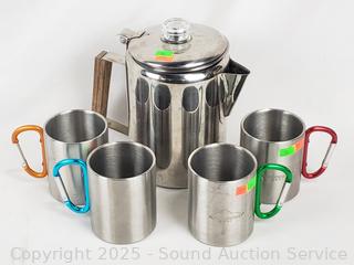 Lot #0098: Percolator Coffee Pot & 4 Aluminum Caribiner Handle Mugs
