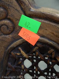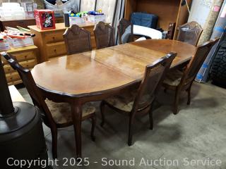 Lot #0042: Vintage Oak Dining Table w/7 Cane Back Chairs
