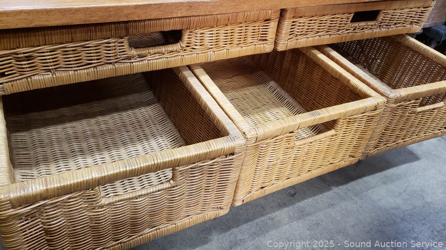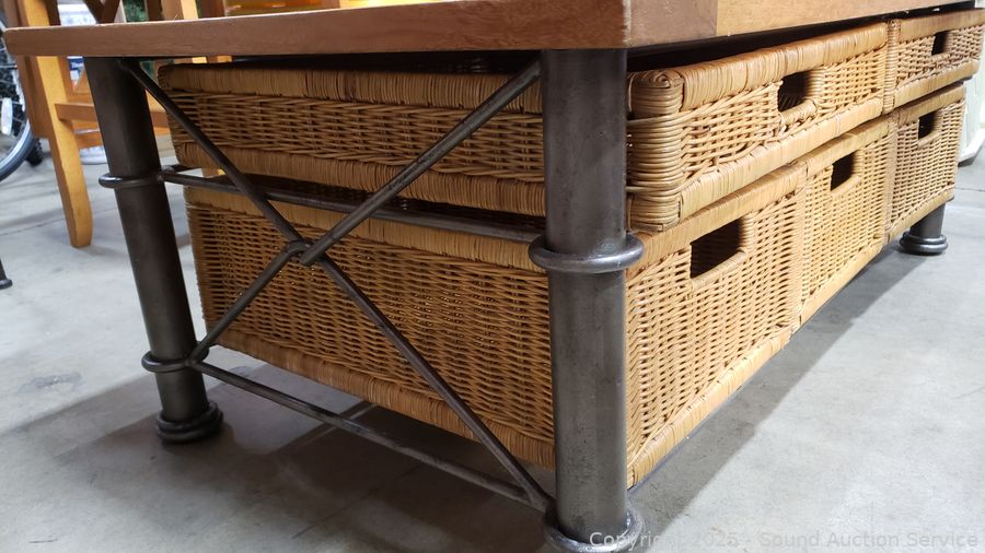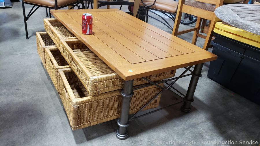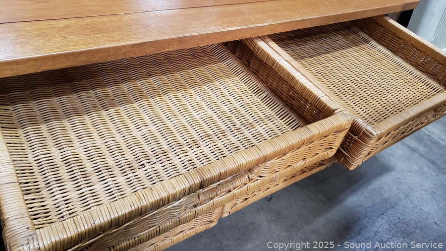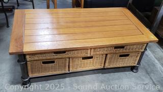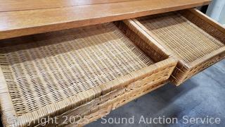 Lot #0035P: Wicker Woven 5-Drawer Coffee Table