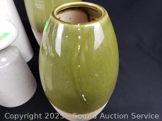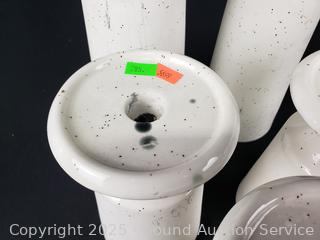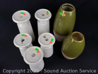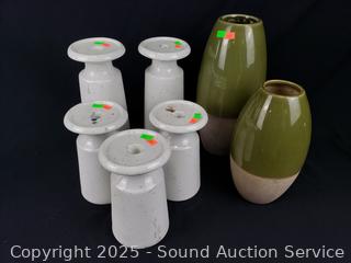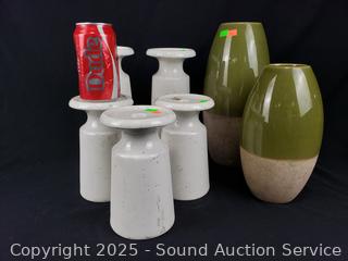 Lot #0285: 2 Pottery Vases, 5 Pedestal Candleholders
