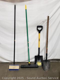 10" & 18" brushes, DeWalt flat & tempered spade shovels.