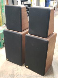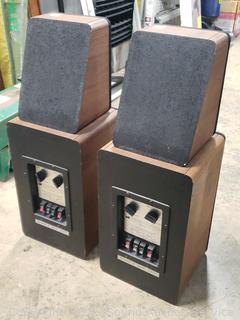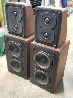 All appear to be in functional condition, surround on subwoofer is deteriorating from age, cracks, refer to photos for more details. 21" H x 7.75" x 7.5" satellite speakers, 18" H x 16" x 15" subwoofer.