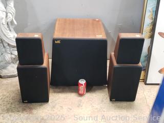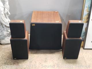 Lot #0023: 3pc Miller & Kreisel Satellite & 12" Subwoofer Speakers