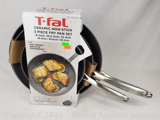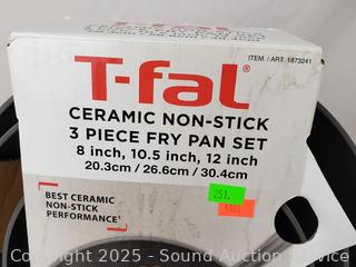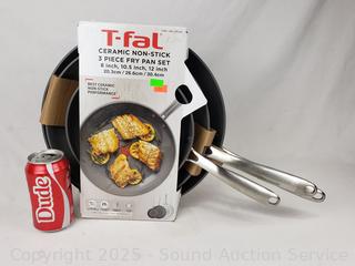 Lot #0251: 3pk T-Fal Ceramic Non-Stick 8|10.5|12" Fry Pan Set