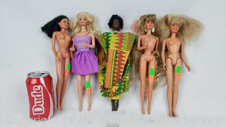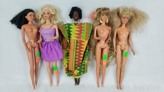 Lot #0201: (4) 1966 Mattel (1) 1988 Hasbro Barbie Dolls