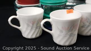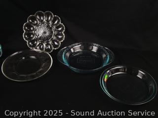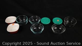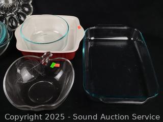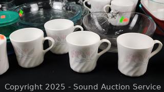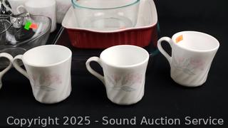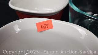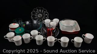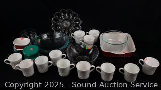 Pie pans, mugs, oyster dish, apple bowl, small bowls, etc. Refer to photos for lot contents, more details.