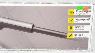 51" extendable, USB-C rechargeable, IPX7 waterproof. Appears to be unused, complete.