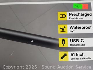 Appears complete, lightly used. Works. 51" extendable, USB-C rechargeable, IPX7 waterproof.